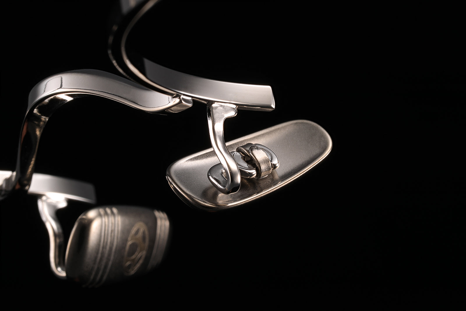 A round frame model for a standard and unique classic style. With a flip-up mechanism, the form is rugged yet sophisticated. The thick rims have an LP groove-like design. The entire temple, including the tip, is made of metal material. Such meticulous details upgrade the wearer’s look. The titanium nose pads are laser engraved with DIGNA Classic’s iconic kabuto samurai helmet, making these fine frames even more exquisite.