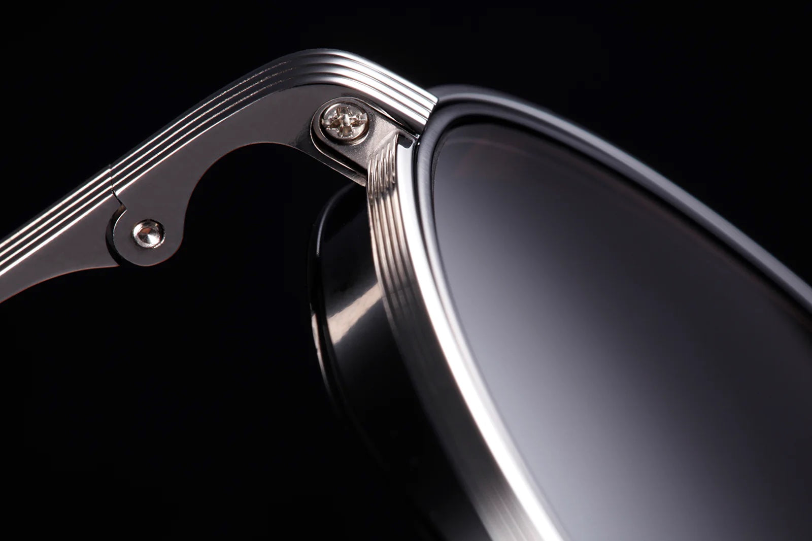 DIGNA Classic’s first collab models developed jointly with Maejima, head of Ted’s Special. Named “Motorcycle Glasses,” the two distinctive models have straight, modern frames, making them easy to put on while wearing a helmet. Designed for motorcyclists, the models feature a titanium reproduction of a hood on the sides of the lens for wind reduction, often seen in vintage frames.The high-quality craftsmanship unique to Made in Japan exhibits immaculate perfection, achieved with the uncompromising expertise and skills of our factory. It is authentic eyewear for sophisticated adults who know what genuine is.