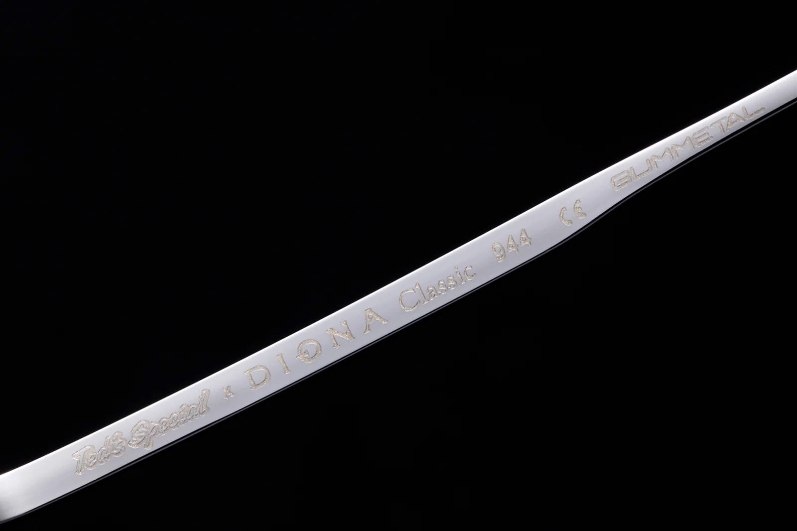 “Ted’s Special” 主宰、前島氏と共同開発されたDIGNA Classic初となるコラボレーションモデル。 「Motorcycle Glasses」と名付けられた個性的な2モデルは、ヘルメットを被ったままでも着用しやす いストレートなモダン、ビンテージフレームでよく見られる風の巻き込みを和らげるレンズサイドに付けられている“フード”をモチーフとしながらそれをチタンで再現、バイク乗りに向けてデザインされている。MADE IN JAPANでなければ成し得ないそのハイグレードな作りは、自社工場の技術が惜しまず投入さ れた渾身の完成度を誇り、本物を知る大人に向けたオーセンティックなアイウェアとして相応しい。