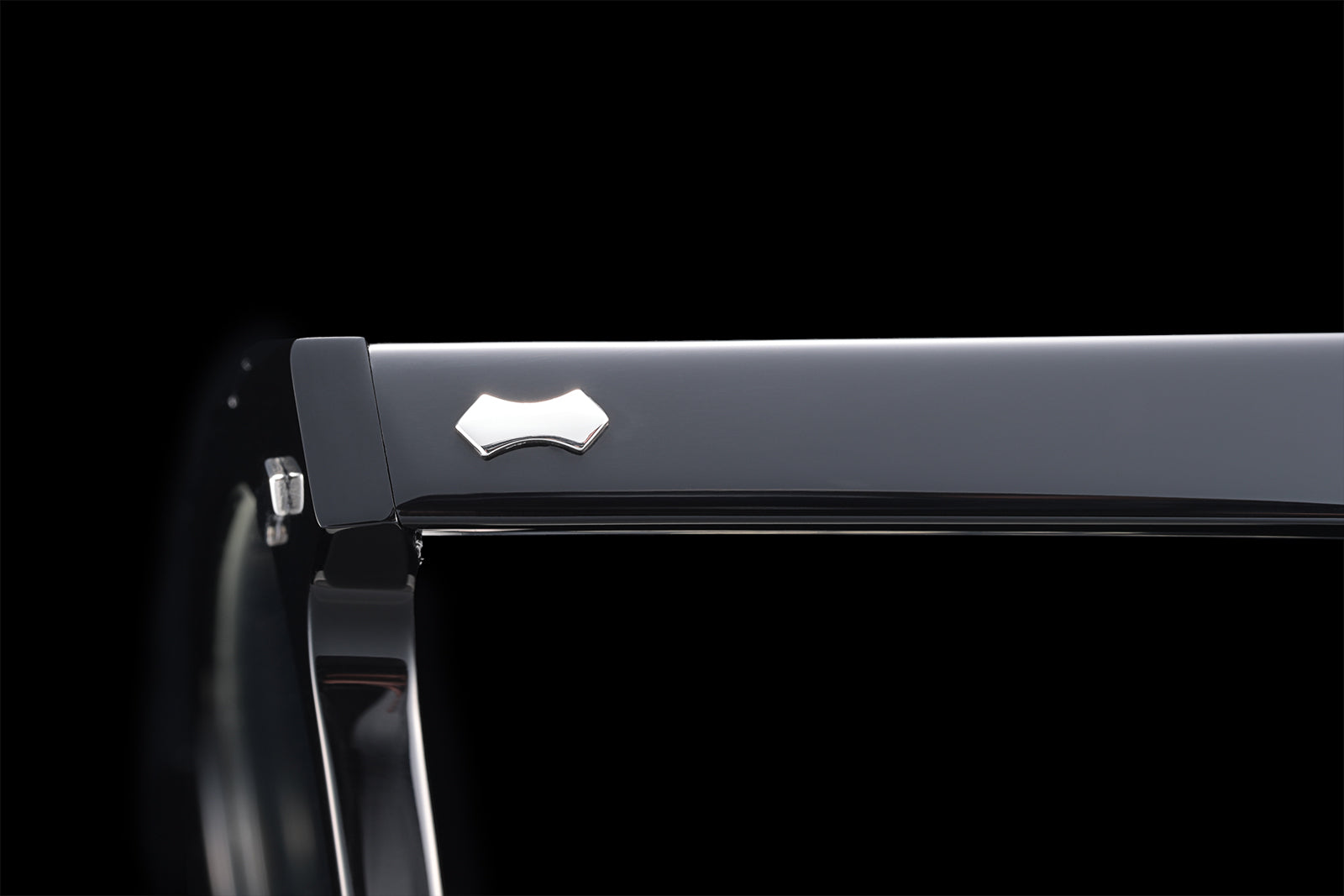DIGNA Classicの代表作“ジミー”が、ディテールと装着感を進化させたエボリューションモデルとして登場。1950年代アメリカ生まれのクラシック・ウェリントンをベースにリプロダクトし、独自の美意識で再構築した。クリングス仕様のチタンノーズパッドを採用し、ワンランク上の着用感と質感を実現した。フロントには、精緻なミル打ちのドット柄をあしらった台座付きの10度傾斜ヒンジを搭載し、快適なフィット感と構造美を両立させた。サンプラチナ製のダブルダイヤリベットや、テンプルエンドに施されたギザ飾りも継承し、ジミーらしい存在感を保ち続けている。日本製ならではの高度な精度と仕上げが際立つバリエーションモデルに仕上げた。※本モデルはカラーレンズ仕様。