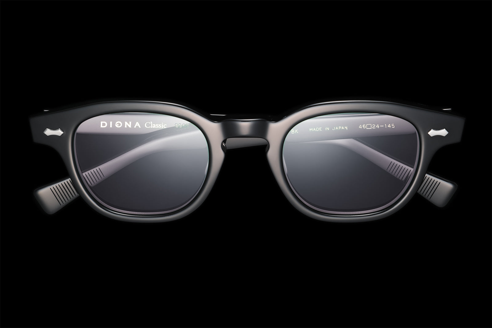 DIGNA Classic’s signature model “Jimmy” returns as an evolved version with enhanced detailing and comfort. Faithfully reproduced from classic American Wellington frames of the 1950s, the design has been reimagined with DIGNA’s distinctive aesthetic. It features titanium nose pads with adjustable arms, offering elevated wearing comfort and a refined tactile quality. The front is fitted with uniquely developed 10-degree angled hinges mounted on precision-milled bases with dotted detailing, balancing fit and visual structure. The signature elements—double diamond rivets in Sun Platinum and the serrated end-tip ornaments—remain intact, preserving Jimmy’s iconic presence. This evolution model showcases the exceptional precision and finish synonymous with Japanese craftsmanship. *This model comes with color lenses.