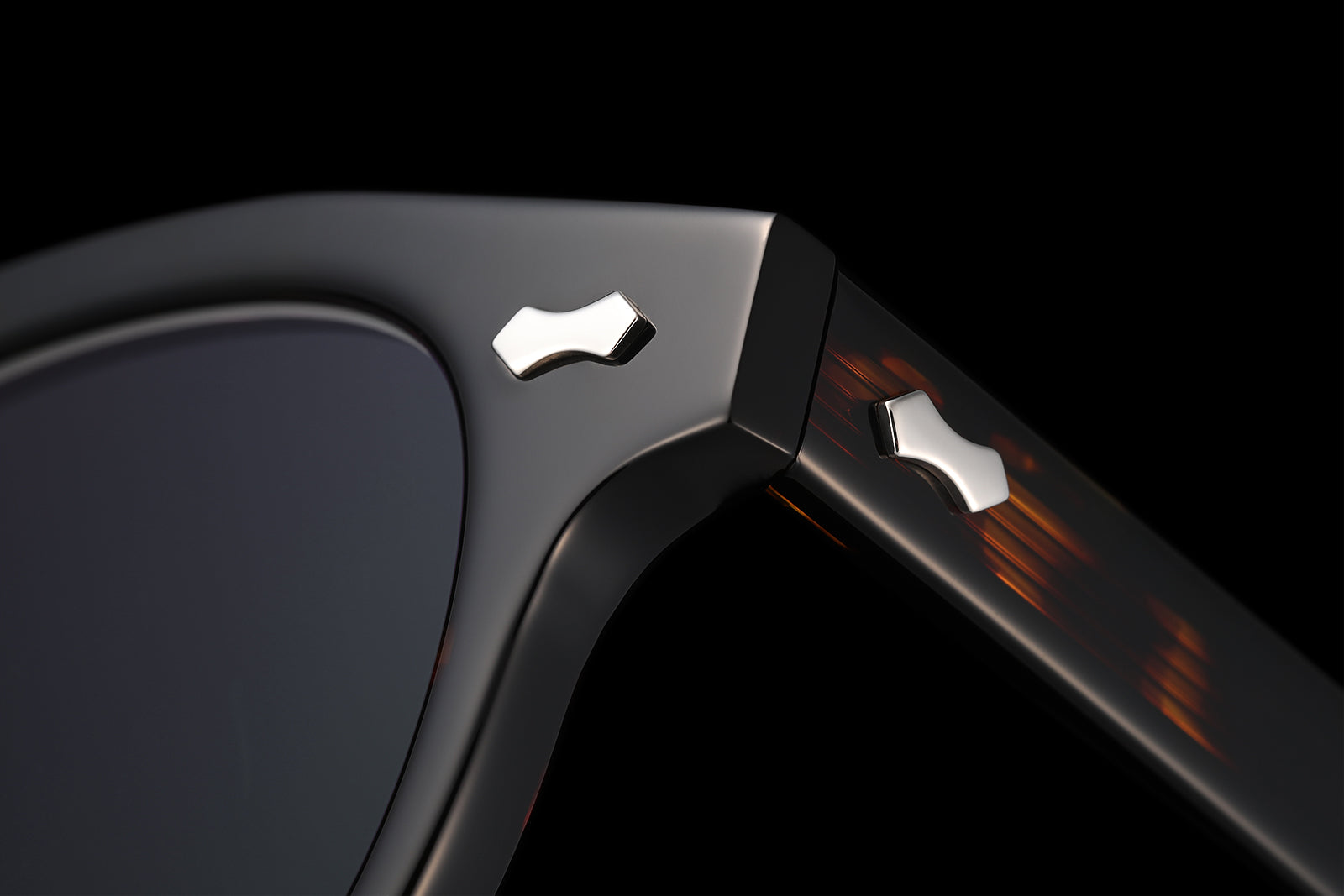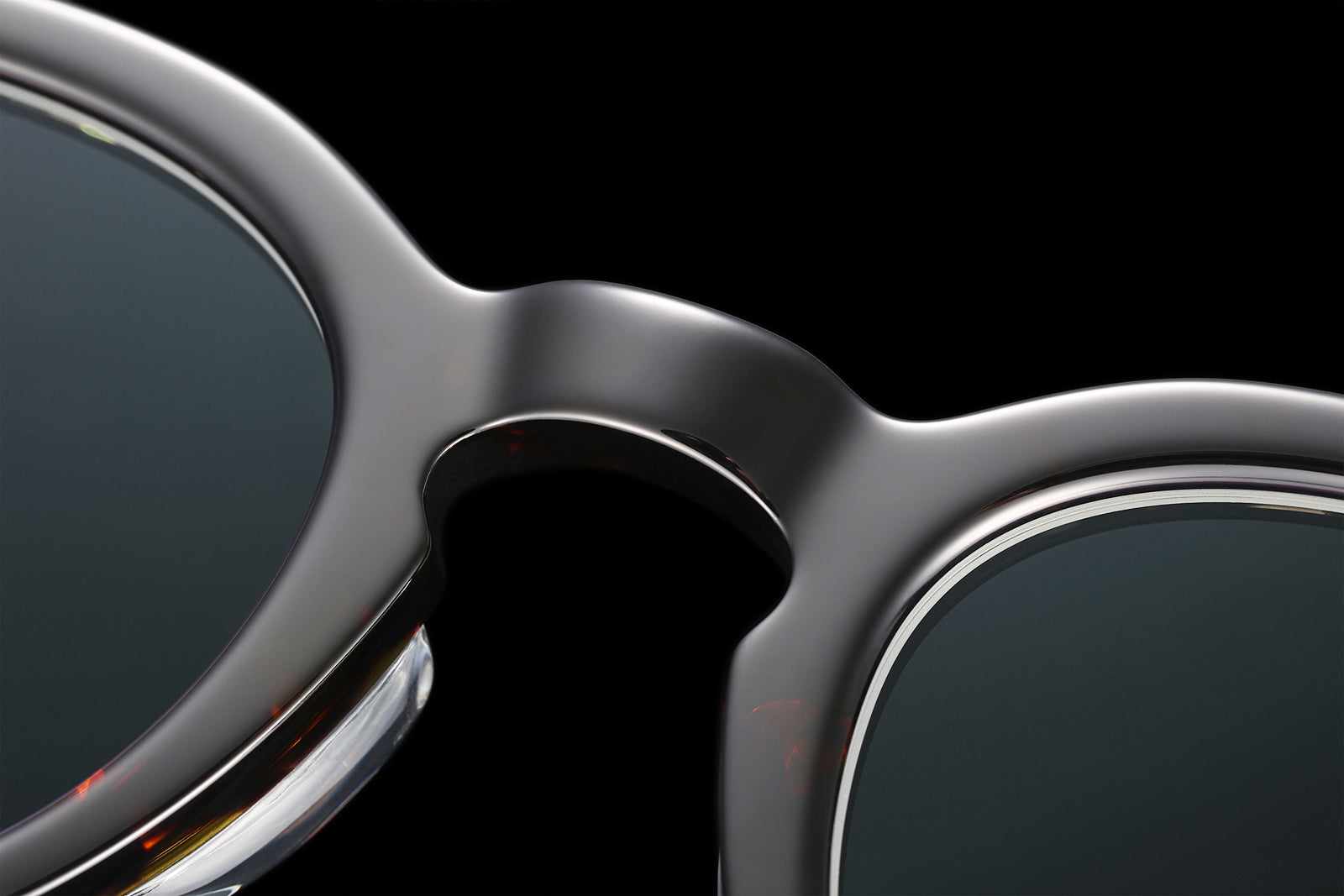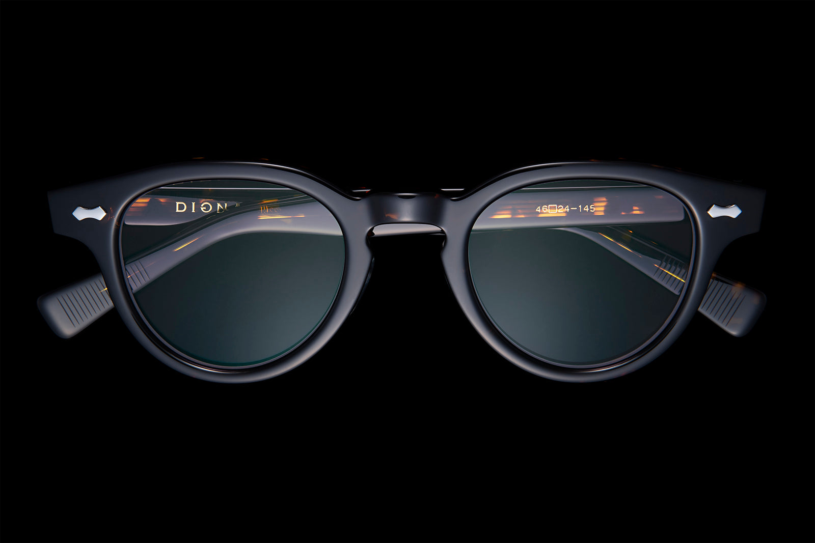 DIGNA Classicのマスターピースである”ジミー”のパントシェイプ“ジェット”がリニューアル。サンプラチナ製のダブルダイヤリベット、テンプルエンドのギザは健在であり、独自開発された10度傾斜のフロント用丁番には、台座に繊細なミル打ちされたドット柄が施されている。日本製の精度の高さが見て取れるエボリューションモデル。