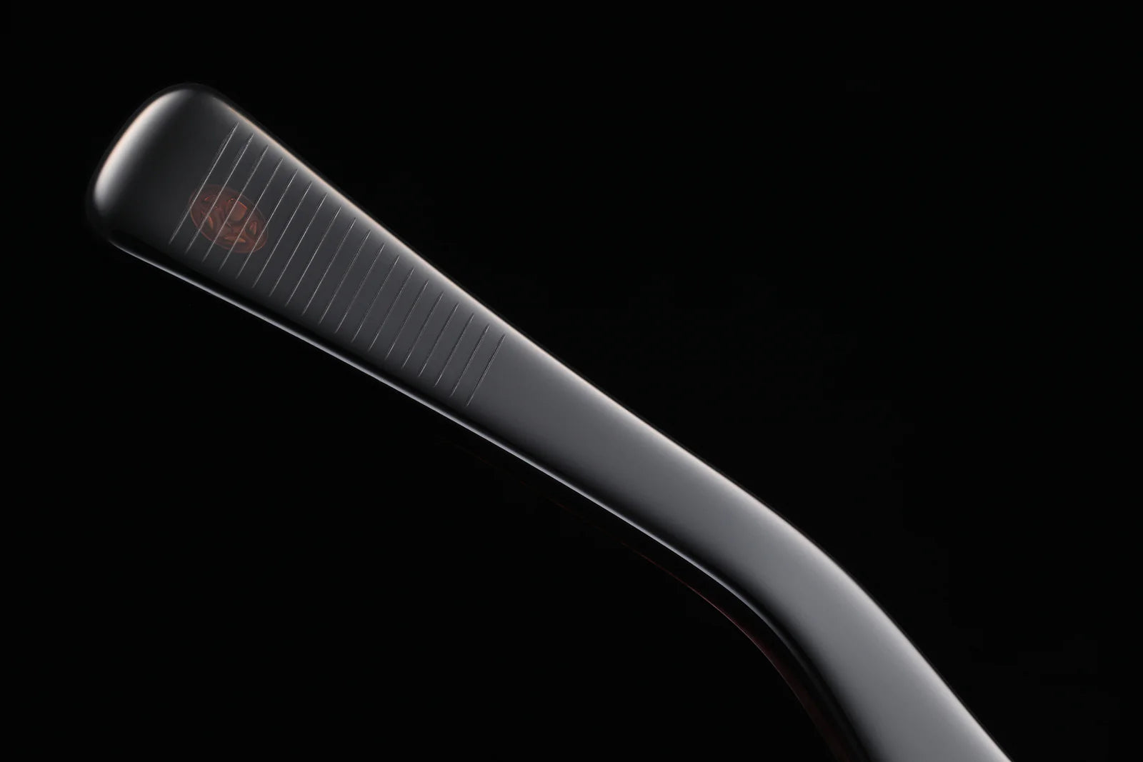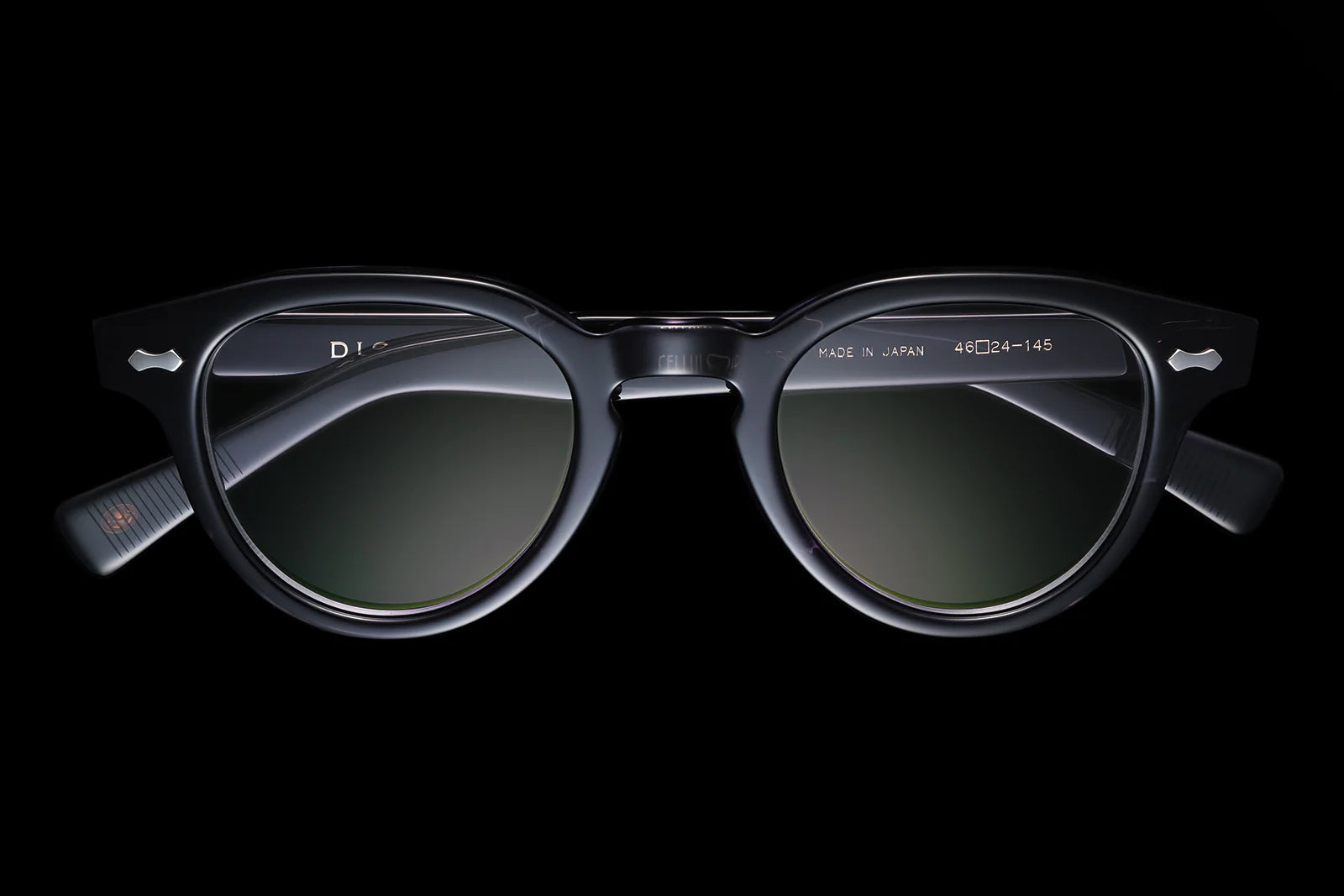 The voluminous celluloid frames feature an unparalleled, stunning textured finish,thanks to the handmade techniques of skilled craftspeople in Sabae City. The Panto lens shape is angled near the hinges, adding sharpness to the style. The temple rivets on the front authentic hinges are custom made of corrosion-resistant Sun Platinum Metal. The temples contain no wire core, taking advantage of the hardness of the celluloid material. The brand’s iconic kabuto samurai helmet is inlaid in the left temple tip.